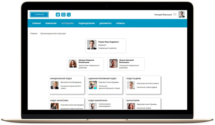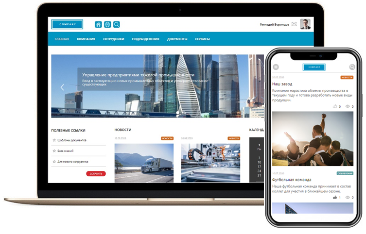 Корпоративный портал позволит сотрудникам компании иметь всю необходимую информацию под рукой. Срества совместной работы и быстрый поиск повышают производительность и делают работу более эффективной. Структурированное отображение информации на сайтах портала позволяет выстроить более тесное взаимодействие между руководством компании и сотрудникми.